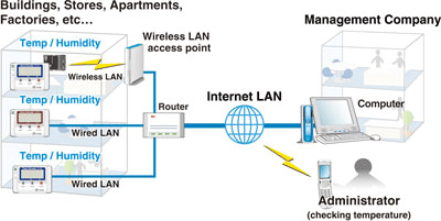 Current temperature and humidity readings can be viewed with a cell phone web browser.